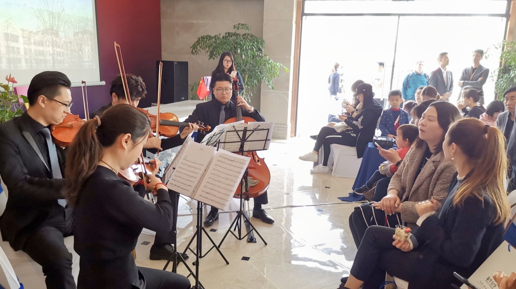 分享會開始前,學(xué)校的音樂老師用專業(yè)的豎琴和四重奏表演為與會家長獻(xiàn)上了一場聽覺盛宴。