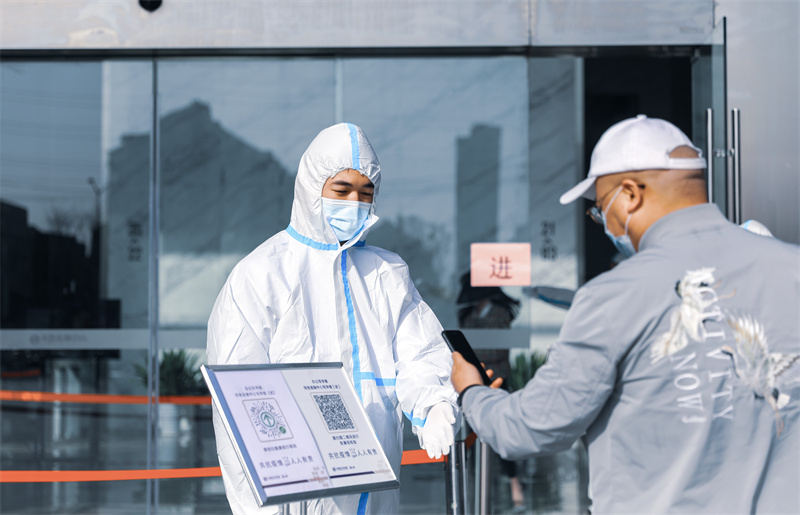 在疫情反撲的態勢下永遠有這樣一群不辭辛勞的戰士們身著白衣,為大家筑起安全屏障“請大家佩戴好口罩,保持1米以上的安全距離出示健康碼,憑碼進入,謝謝配合”。