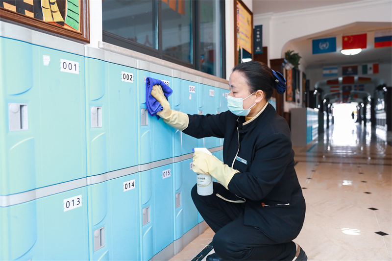細節處見服務,疫情當前,為了最大限度避免與病菌接觸,嚴格落實門禁管控針對老師、學生所能接觸到的每處細節,做到全覆蓋消毒殺菌,打響一線防控攻堅戰。