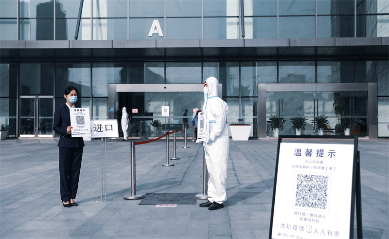 從信息通知、引導出入到審核二碼、維持秩序,他們保障寫字樓的上班人員安全而有序地進入工作區域堅定而認真的工作身影,為我們留下一道道最美風景。