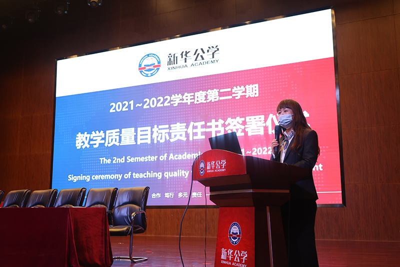儀式最后,張校長對教育教學工作作了重要部署,他指出:教育教學成績是衡量學校教育教學質量的生命線,是社會關注的焦點,是家長討論的熱點,各位教師應當結合我校小班化教學特色,努力給孩子提供個性化的成長方案,充分做好課程與作業的分層,不能讓目標僅僅寫在紙上,而應將立德樹人的使命目標刻在心底,努力讓每一個孩子都能在新華公學找到歸屬。