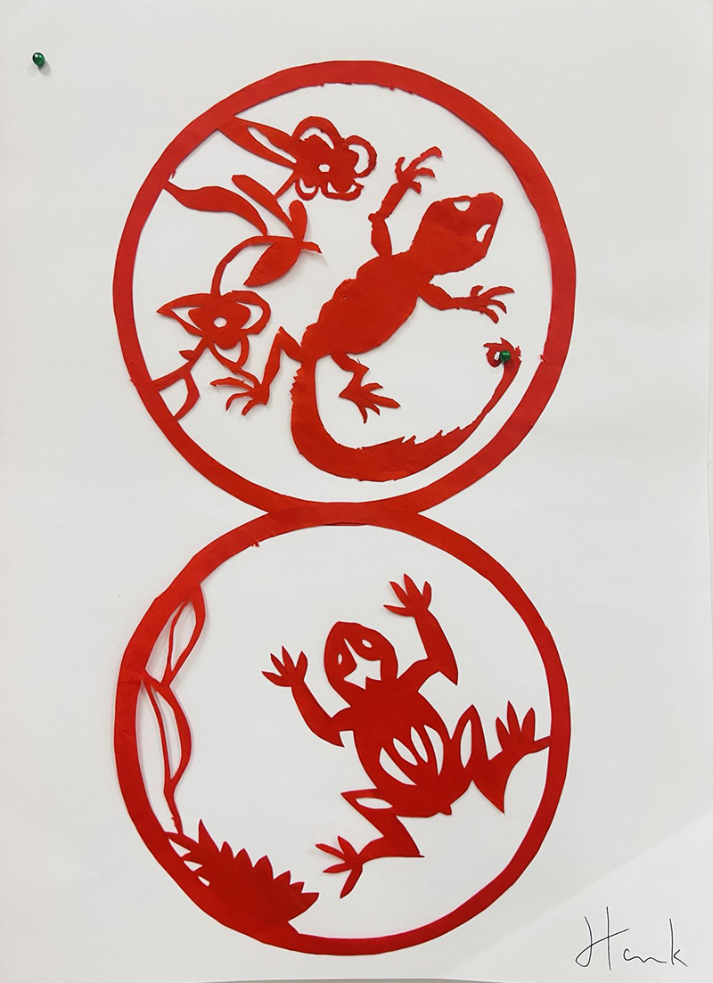 在進(jìn)行剪紙教學(xué)時(shí),教師會(huì)設(shè)計(jì)不同的特定的場(chǎng)景主題,使學(xué)生根據(jù)場(chǎng)景,對(duì)剪紙進(jìn)行設(shè)計(jì)與制作,一來鍛煉學(xué)生的動(dòng)手能力,傳承剪紙藝術(shù);二來鍛煉學(xué)生的思維能力及解決實(shí)際問題的能力;三來學(xué)生根據(jù)相應(yīng)主題剪紙創(chuàng)作,通過不同圖案體現(xiàn)不同寓意,讓視覺語(yǔ)言的運(yùn)用能力得到有效鍛煉。