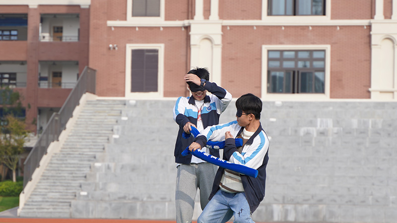 蒙住雙眼,靠聽覺去發(fā)現(xiàn)對(duì)方位置,模仿俠客用長(zhǎng)條氣球刺敲打?qū)Ψ剑惨⒁夥直嫱饨绺蓴_,歡聲笑語在操場(chǎng)飄蕩,幫助同學(xué)們釋放學(xué)習(xí)壓力。