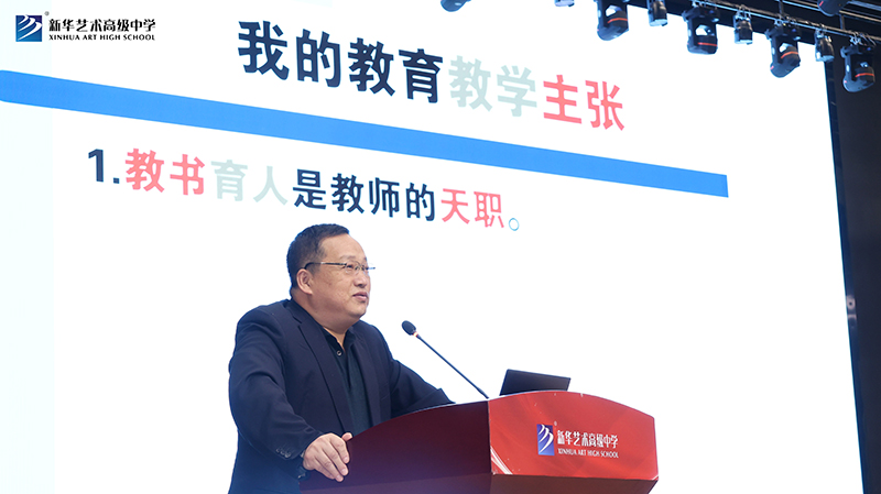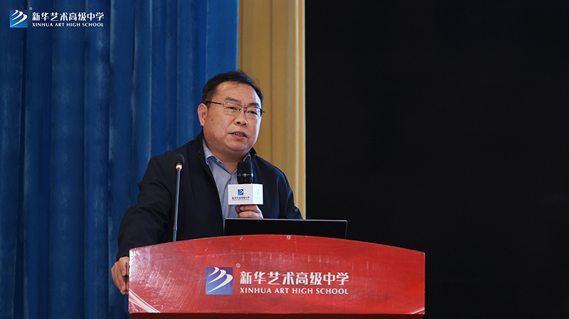 下午教研活動中,新華藝術(shù)高級中學(xué)副校長李愛國向參會領(lǐng)導(dǎo)及老師全面介紹了新華藝術(shù)高級中學(xué)辦學(xué)歷程、辦學(xué)成就、課程體系、課堂創(chuàng)新及特色德育工作等,給與會老師留下了深刻印象。