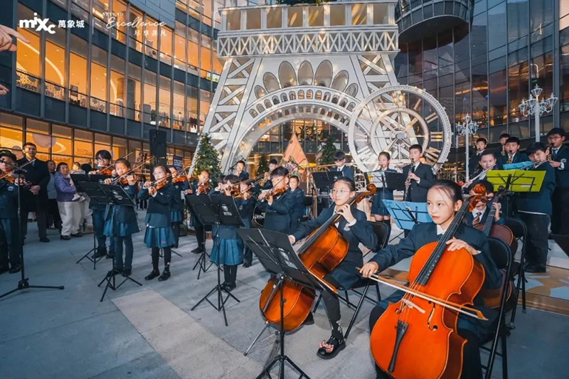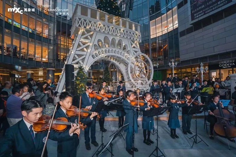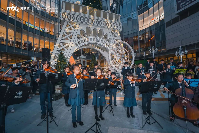 樂團的成員各具風采,才華橫溢,富有層次感的音符從孩子們的指尖緩緩流淌,縈繞耳畔飛向天空,這突如其來的驚喜,給觀眾們帶來了一場聽覺盛宴。讓萬象城原本就歡樂的圣誕氛圍,更增添了一抹亮色。