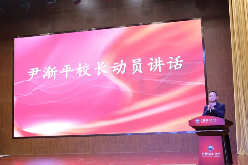全體師生用熱烈的掌聲歡迎尹漸平校長為本次誓師大會做動員講話。尹校長在講話中指出:這是一場關乎榮譽、責任與夢想的盛會。百日,是時間的標尺,更是奮斗的號角。并鄭重地向大家發(fā)出號召:“讓我們以百倍的信心,千倍的努力,迎接百日沖刺奮斗新征程!”