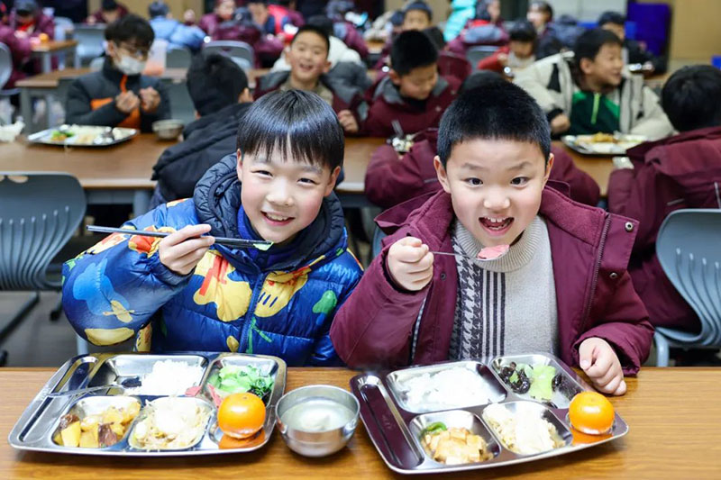 校長和老師們早早就等候孩子們歸來,送上新年的祝福與擁抱。伴隨著一聲聲充滿濃濃情意的“新年好”、“新年快樂”,同學們快樂地踏入校園。