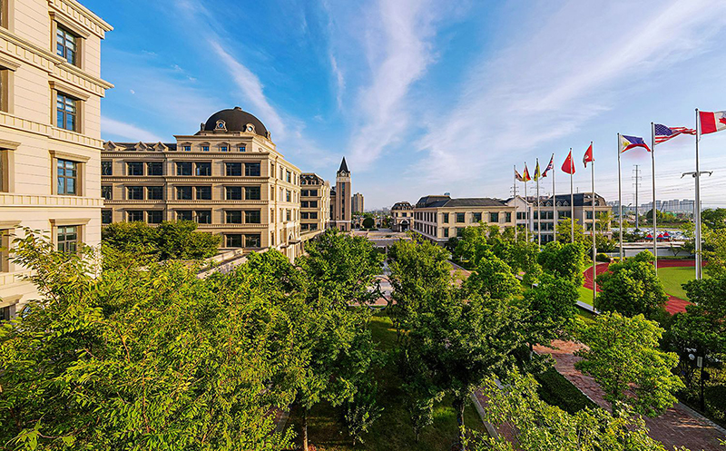 簡約的英式建筑與尖頂的高聳鐘樓,錯落有致地散落在校園里,構成新華藝術高級中學的獨特風景線。