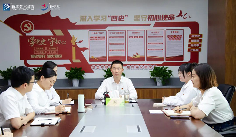 隨后,支部委員會召開第一次全體會議,新華藝術教育總經理蔡賢滿繼續當選為黨支部書記,并明確藝學堂市場運營中心經理劉前軍為黨支部組織、宣傳委員,藝學堂教學管理中心研發主管裴蓓為黨支部紀檢委員。